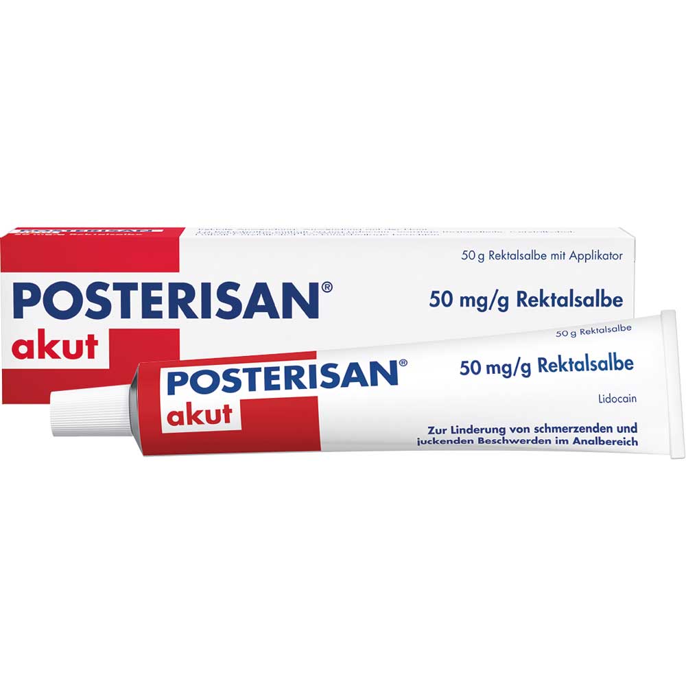 Posterisan akut ist ein rezeptfreies Arzneimittel bei akuten, analen Beschwerden. Die rezeptfreie Rektalsalbe enthält den Wirkstoff Lidocain, ein lokal wirksames Betäubungsmittel. Das Arzneimittel eignet sich zur Behandlung von juckenden und schmerzenden Beschwerden bei Analfissuren oder Hämorrhoidalbeschwerden.